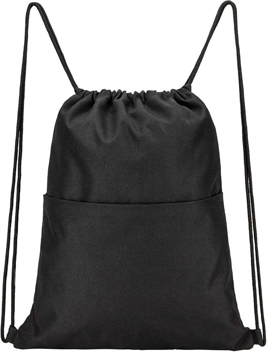 FETINES Drawstring Backpack Water Resistant String Bag Sports Sackpack Gym Sack-Black