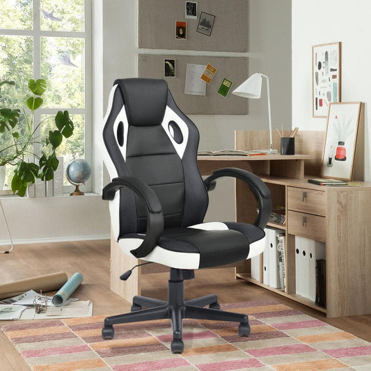 Tunney White Faux Leather Upholstered Swivel Gaming Chair Office Chair Task Chair with Adjustable Height
