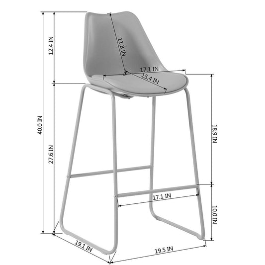 Russ 29 in. Gray Low Back Metal Frame Bar Stool with Faux Leather Cushion Seat - Set of 2