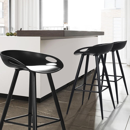 Set of 50, Fiyan 32.3 in. Black Metal Frame Low Back Retro Style Bar Stool with Black PP Seat