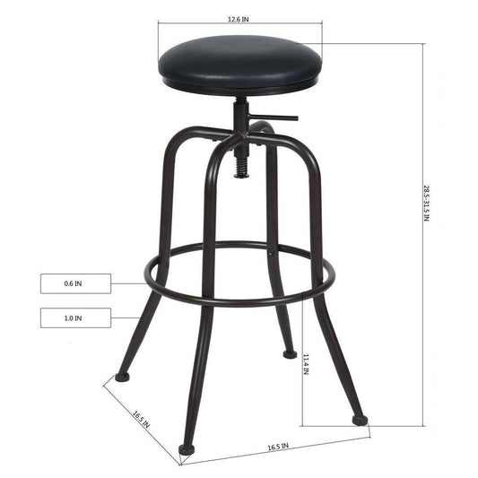Set of 54, Ana 28.5-31.5 in. Adjustable Height Black Backless Metal Frame Swivel Industrial BarStool with PVC Seat