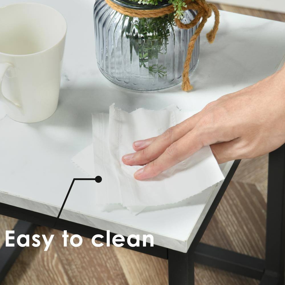 Facto 13.8 in. White Marble MDF End Table