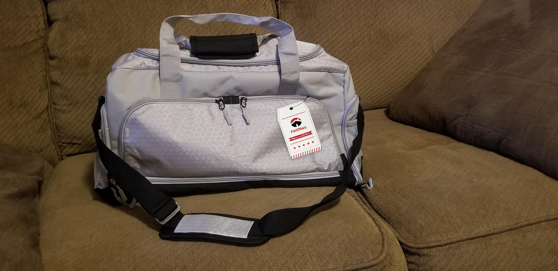 FETINES The Durable Crowdsource Designed Duffel Bag with 10 Optimal Compartments Including Water Resistant Pouch-White