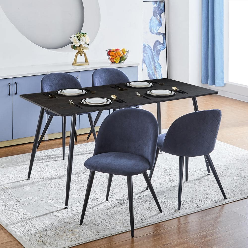 Set of 2, Zomba Dining Chair - Velvet Blue with Black Paintting Leg