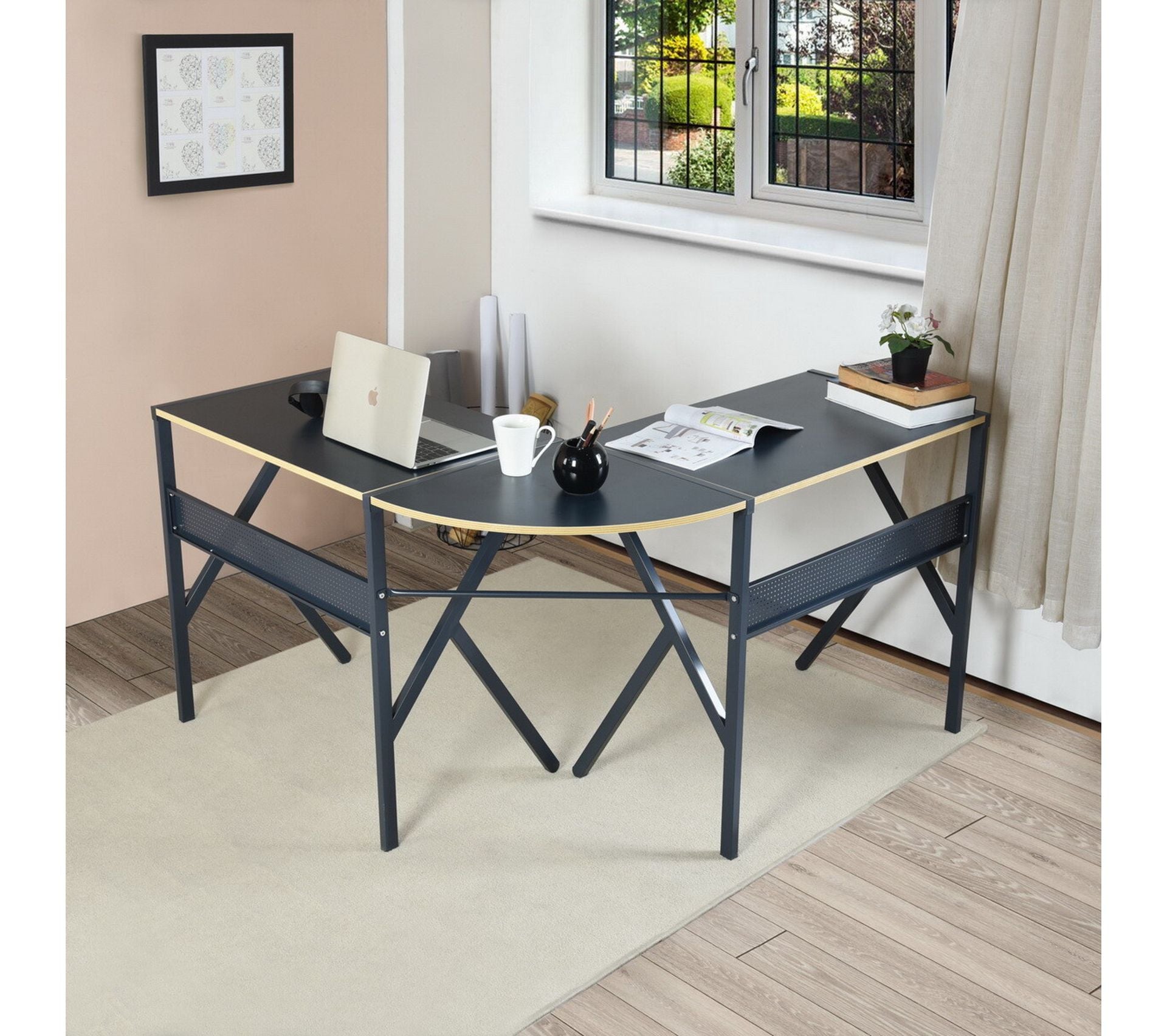DURABLE CONSTRUCTION: The L-shaped computer desk is constructed with a premium metal frame for high quality particle board. The frame of the desk is made of powder coated high performance steel, which provides stability and durability.