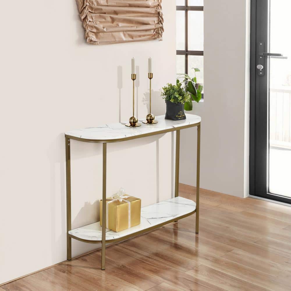 Set of 30, Adria Console Table 100cm - White Marble with Metal Leg