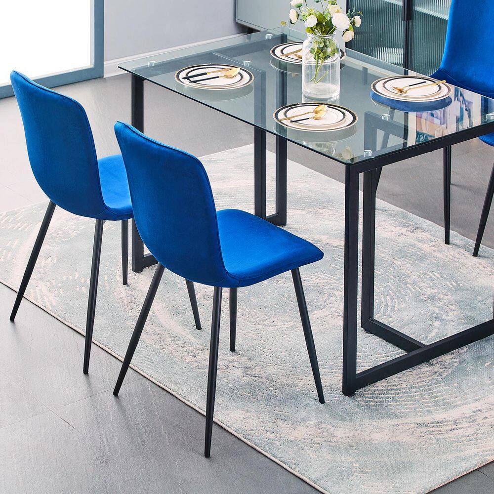 Set of 32, SCARGILL Dining Chair - Velvet Blue with Black Metal Leg