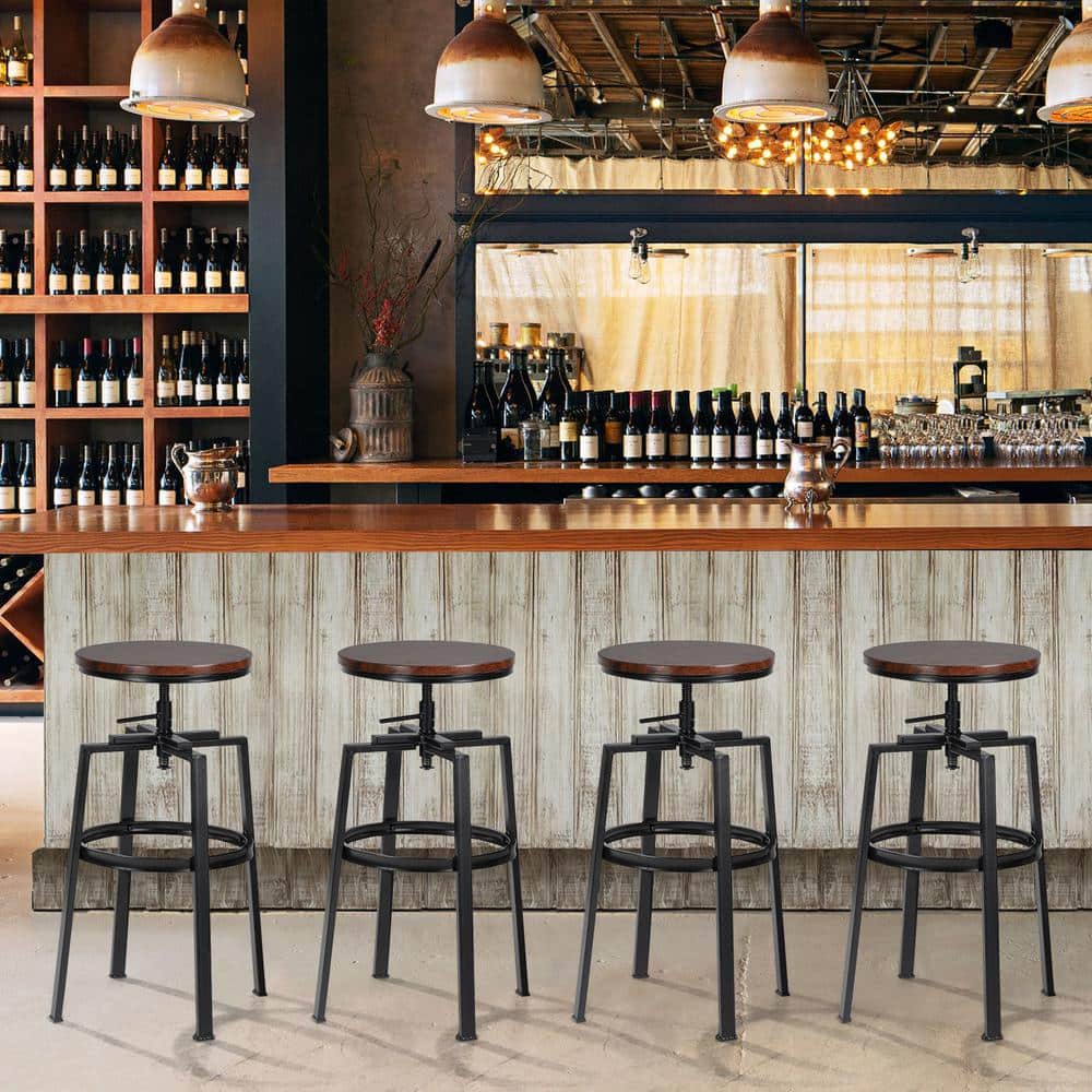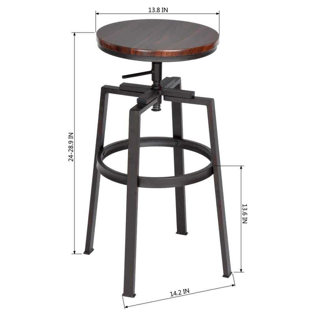 Elevate your space with our sleek stools, measuring a neat 14x14x26.2-29.1 in. and tailored for 35-43 in. counters. Not only do they adjust to your preferred height, but the 360-degree swivel ensures you're always part of the conversation. Crafted with a robust metal frame and a deep walnut-like wood grain seat, they exude an industrial charm that's a fit for both modern chic and rustic charm. Whether you're decking out your kitchen, bar, or office, these stools promise comfort with their footrest and a design that tucks away neatly. And don't fret about your floors; we've got them covered with protective foot caps. Plus, with waterproof, oil, and scratch-resistant finishes, they're a breeze to maintain. Dive into an easy assembly experience; we've packed all the tools and clear instructions you'll need. Transform your interiors with a blend of style, function, and comfort.