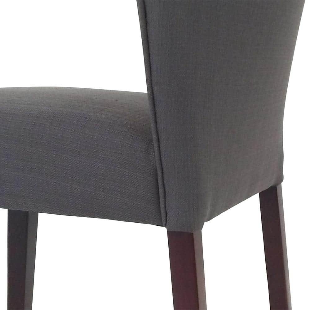 The Cambodia collection dining chairs feature contemporary and elegantly upholstered dining chairs. These dining chairs arrive as a set of 2. A sturdy premium rubber wood frame and a generous back provides each dining chair with unwavering structural support and endurance. The low-key gray fabric upholstery fits well to any dining setting. The dining chairs feature the beauty of a classic wing back design, an ample comfort seat filled with plush, high quality foam.