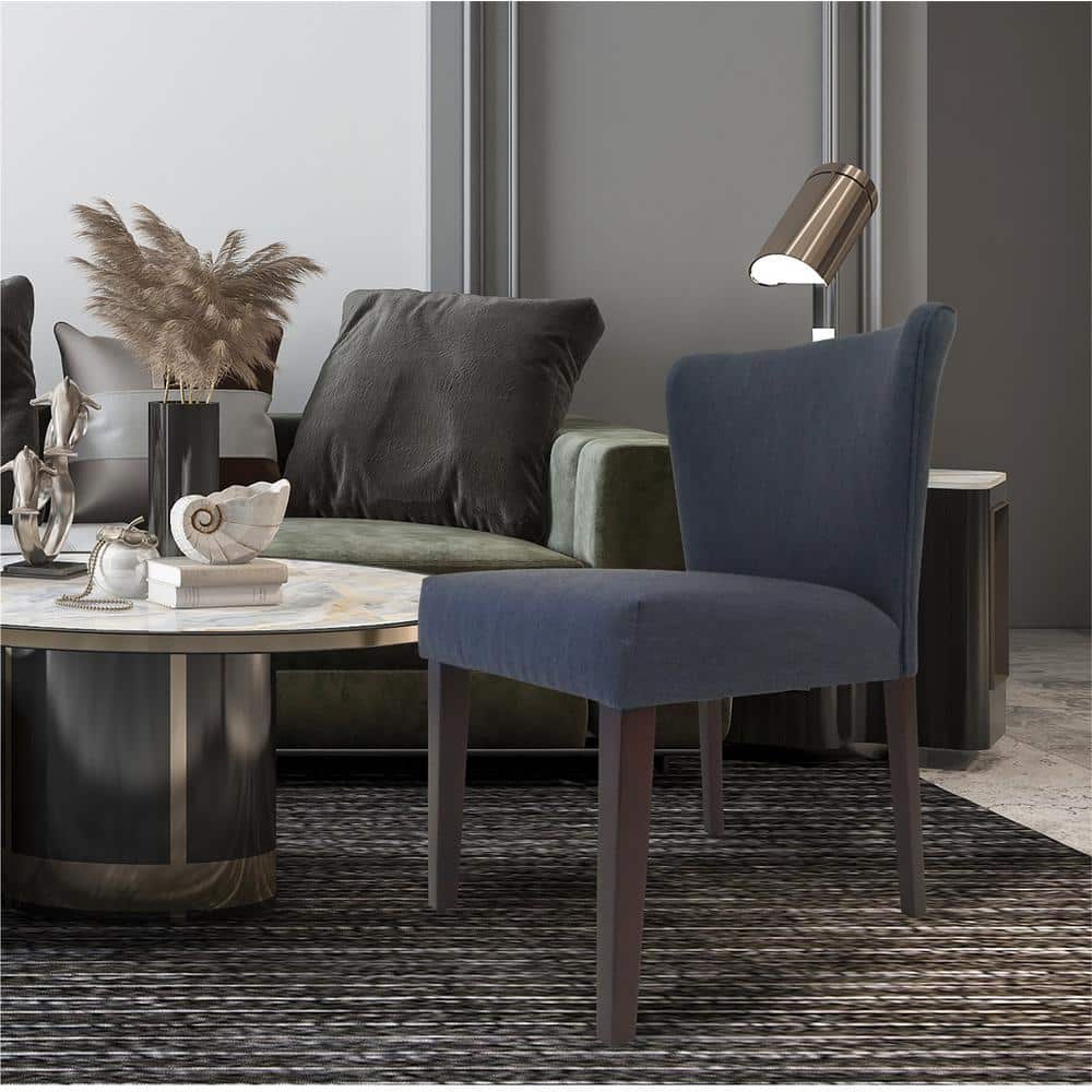 The Cambodia collection dining chairs feature contemporary and elegantly upholstered dining chairs. These dining chairs arrive as a set of 2. A sturdy premium rubber wood frame and a generous back provides each dining chair with unwavering structural support and endurance. The low-key gray fabric upholstery fits well to any dining setting. The dining chairs feature the beauty of a classic wing back design, an ample comfort seat filled with plush, high quality foam.