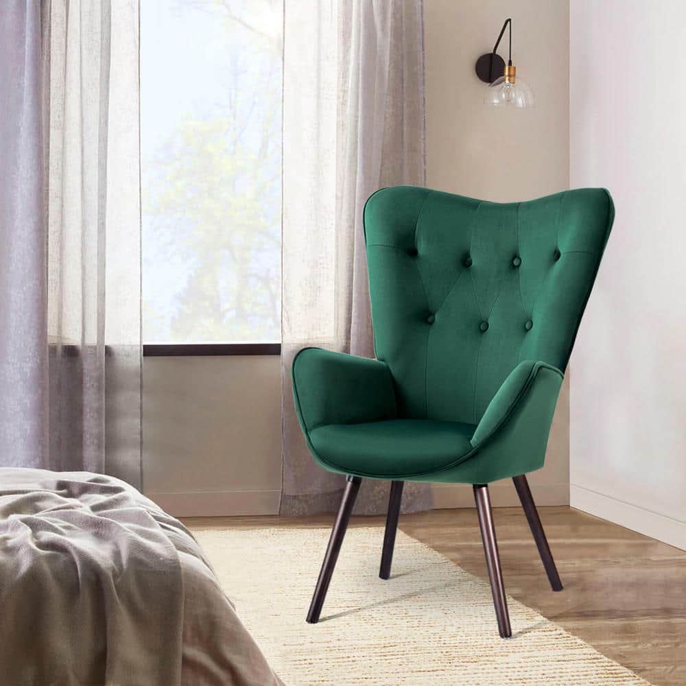 Set of 9, Kas Green Velvet Tufted Leisure Arm Chair