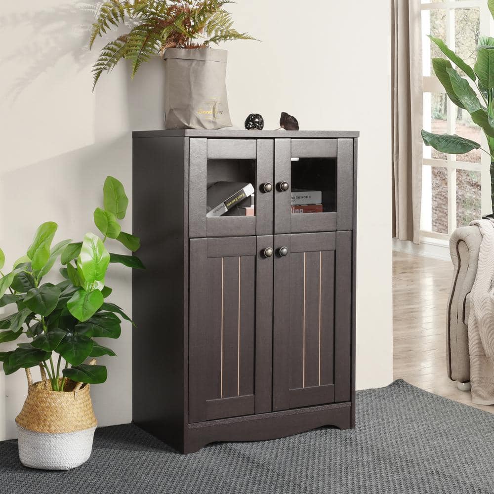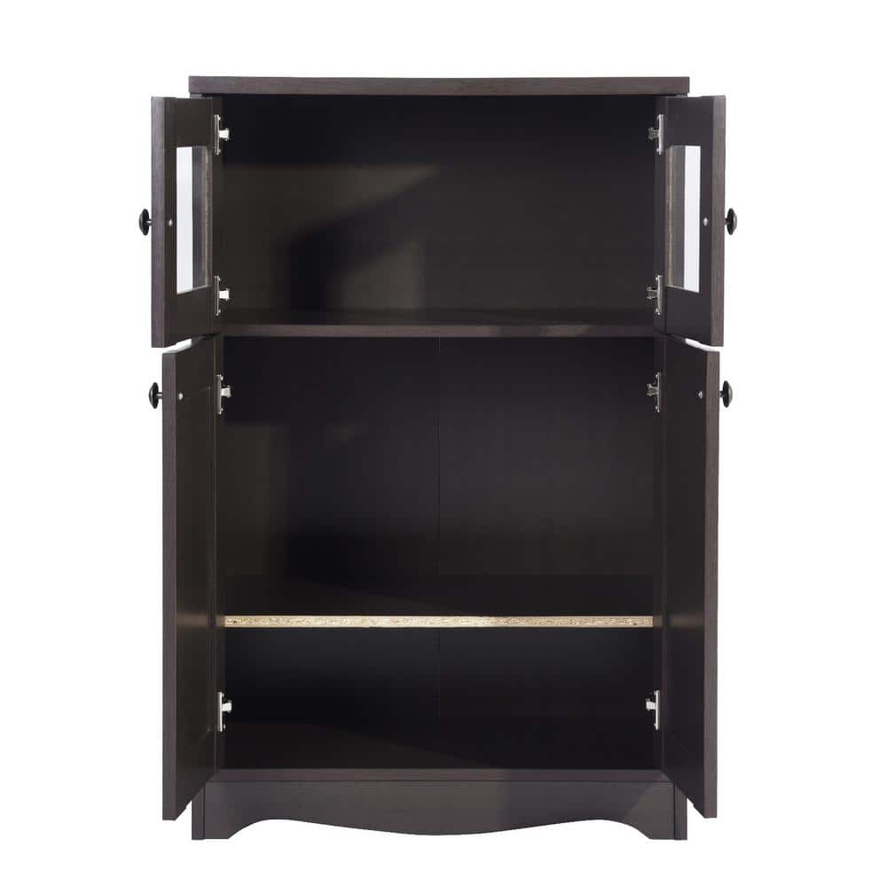 Upgrade your home organization with the Furniturer INC Linen Storage Cabinet in a beautiful brown finish. This versatile cabinet offers ample storage space, featuring a large cabinet with double doors, a top shelf for displaying decor, and a smaller glass-door cabinet. It's not only a practical storage solution but also a stylish addition to any room, from the kitchen and living room to the office and entryway. With fast delivery from our US warehouse, you can enjoy this functional and elegant piece in just 3-10 business days.